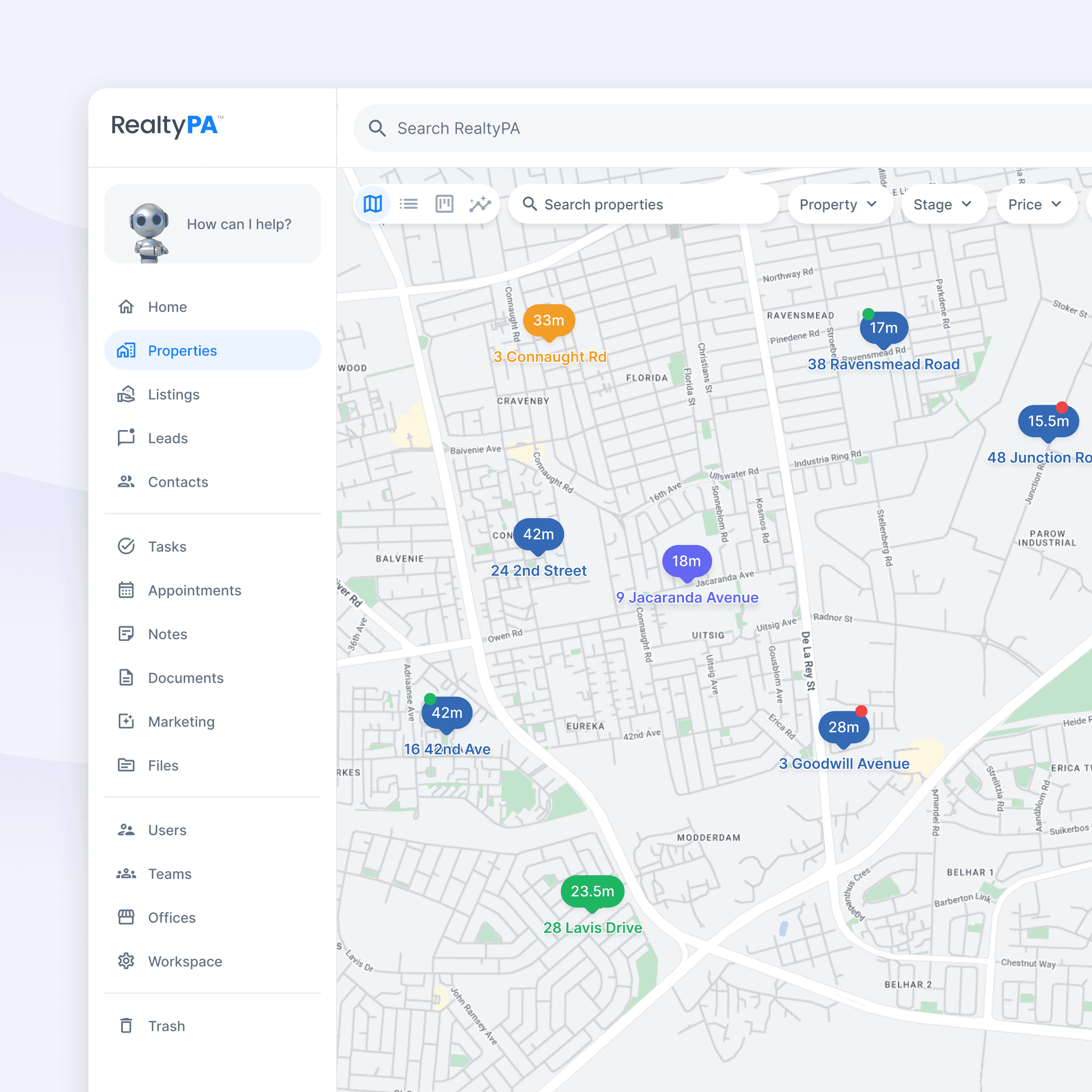 See every listing, lead, and opportunity on a live, intelligent map built for modern agencies.