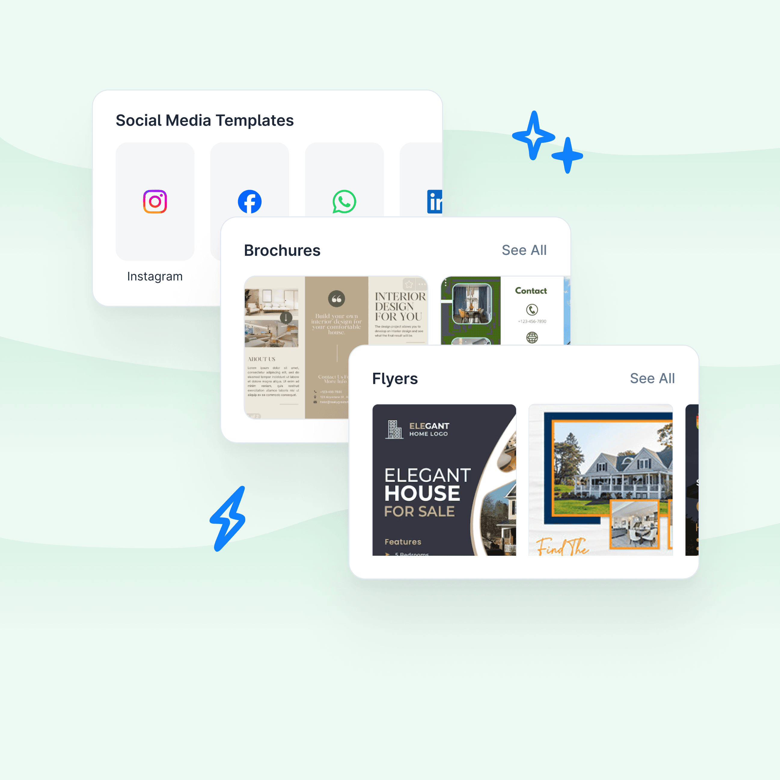 Social Media Templates make it effortless for agents to share high-quality, on-brand content. Automatically generate beautifully designed posts for new listings, price changes, just-sold updates, and more, all formatted for platforms like Instagram, Facebook, and WhatsApp.