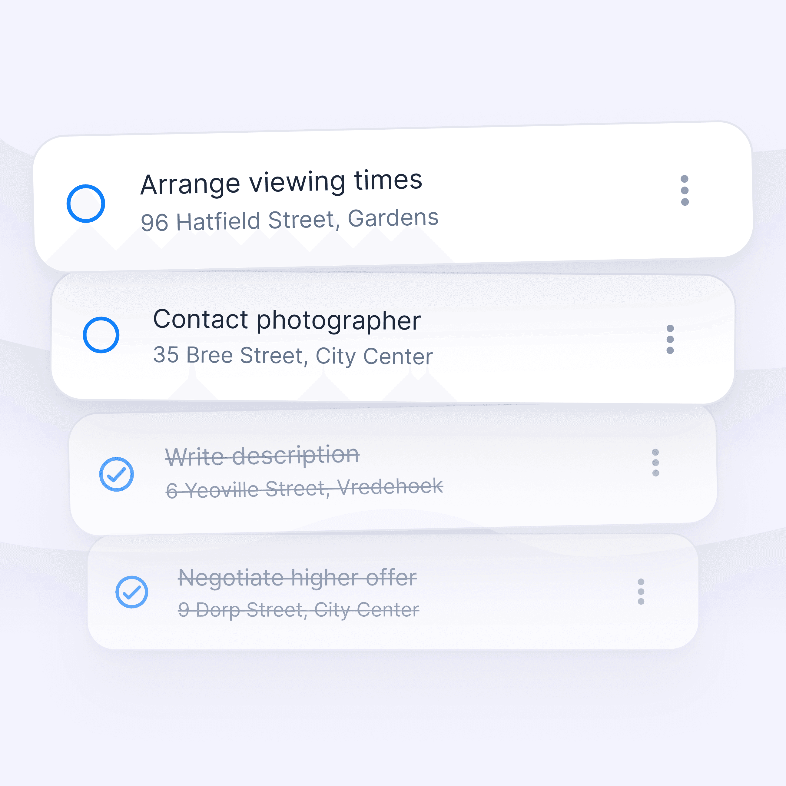 Track your to-dos, set reminders, and keep deals moving with a clear task workflow.